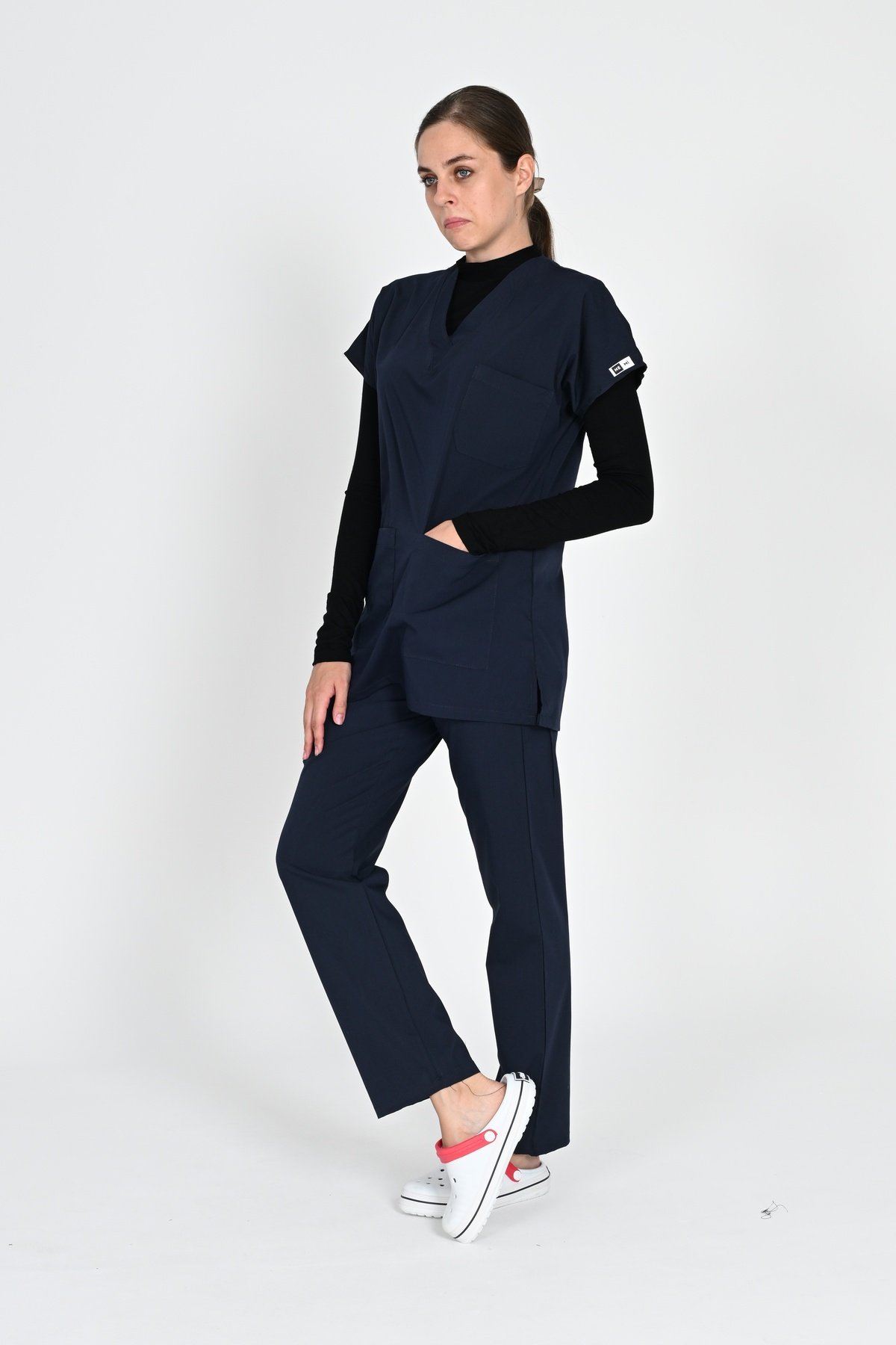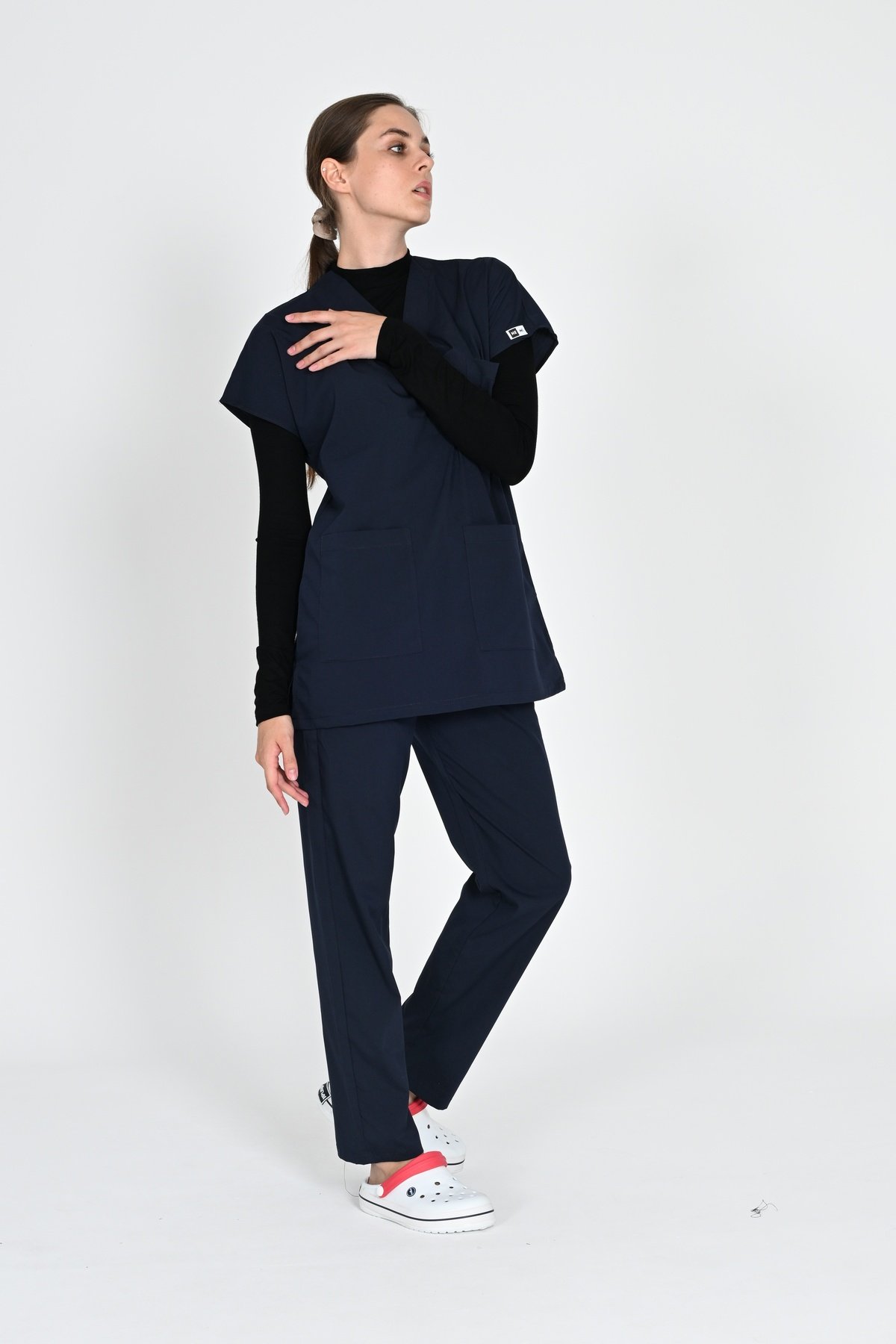 Tesettür Yarasa Kol Doktor Ve Hemşire Forması Scrubs Takım 75cm Lacivert - Görsel 4