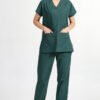 Yarasa Kol Doktor Hemşire Forması Takım Avcı Yeşili Likralı Pamuklu - Görsel 4