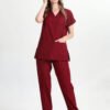 Doktor Hemşire Forması Scrubs Takım Bordo Alpaka - Görsel 3