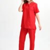 Doktor Hemşire Forması Takım Kırmızı Alpaka Kumaş - Görsel 5